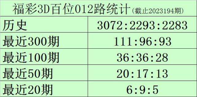 195期黑天鹅福彩3D预测奖号:012路统计分析