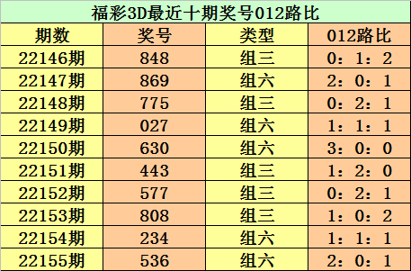 开奖回顾:第2022155期3D奖号为536。形态:组六,奇偶比2:1,大小比2:1,012路比为2:0:1。