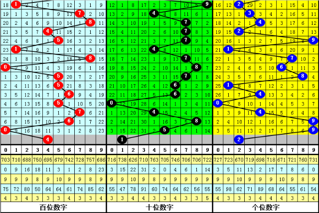 组选分析:在0-9的组选分布图中,最近10期0-2区段开出7个号码,3-6区段开出13个号码,7-9区段开出10个号码,上期各区段分别开出1个奖号,本期重防前端号码热出,注意7-9号码断区。