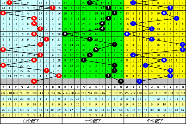 从以上统计可以看出,在组选分布图中,号码0开出4次,1开出4次,2开出5次,3开出4次,4开出7次,5开出5次,6开出9次,7开出6次,8开出6次,9开出10次,号码奇偶比为29:31,奇偶号码出现比例基本相当,本期看好奇号转热,奇偶比为2:1;号码大小比为:36:24,大号表现相对活跃,本期看好大号继续热出,大小比参考2:1。