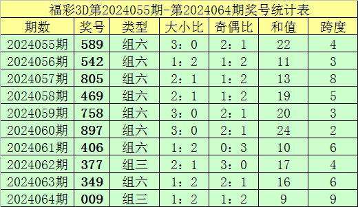 上期回顾:福彩3D第2024064期奖号:009。