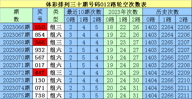 开奖回顾:排列三第2023075期奖号为:738,号码012路比为1:1:1。