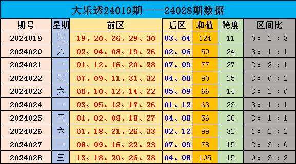 当期前区号码三区比为0:3:2。后区开出形态为偶偶的号码04 08。