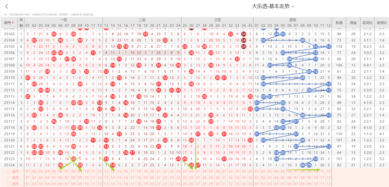 ③和值:结合对区间的比例数据来看本期和值参考100~120范围参考