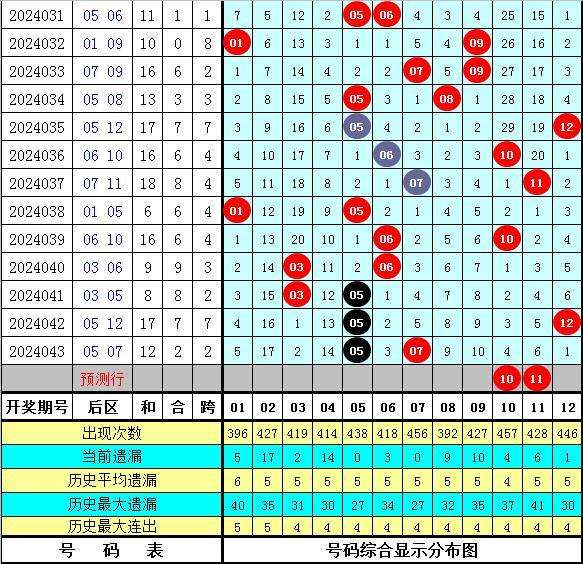 金大玄第2024044期体彩大乐透前区遗漏分析(定义,遗漏0-4期号码为热码,遗漏5-12期奖号为温码,遗漏13期及以上为冷码):