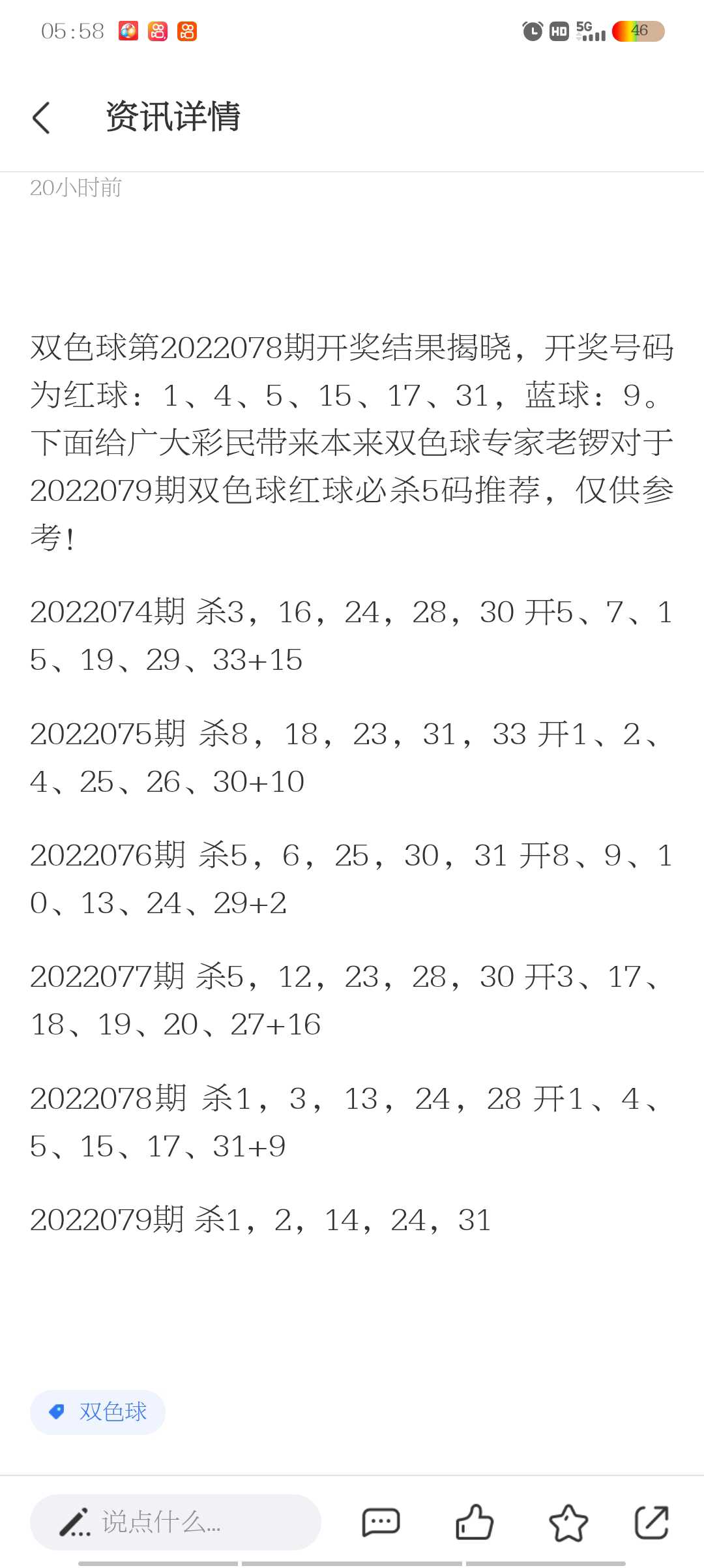 [彩吧]双色球22089期名彩客栈本期号码推荐
