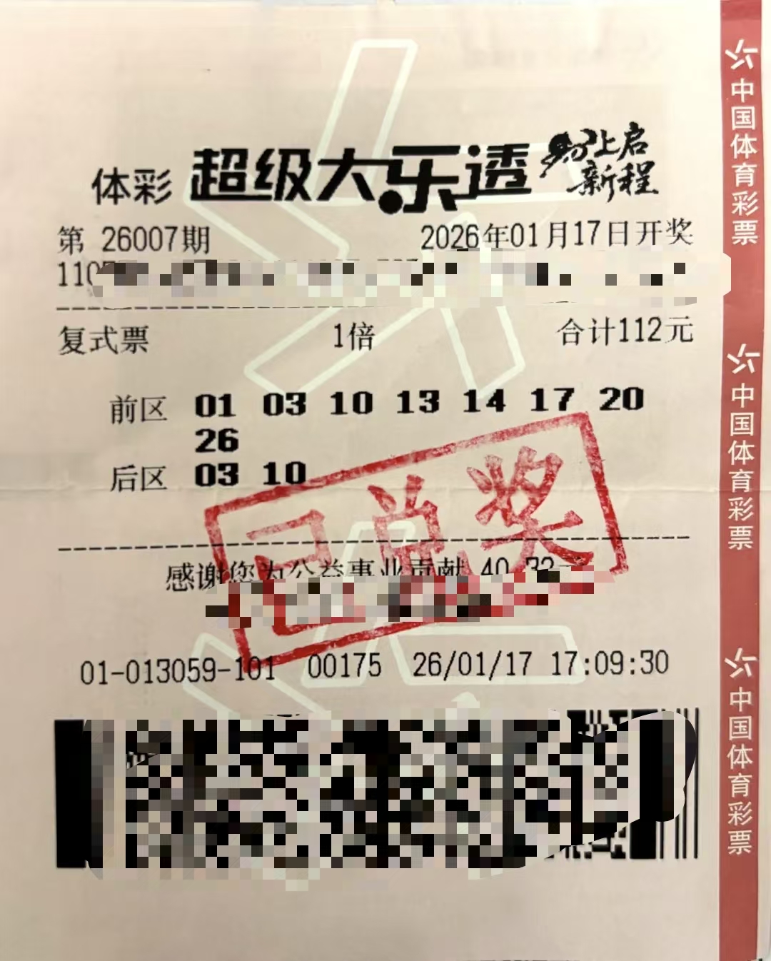 2026年1月17日,体彩大乐透第26007期开出18注一等奖,济南市长清区一位购彩者凭借"8+2"复式票揽获553万大奖。1月20日,中奖者刘先生冒雪现身山东体彩中心领奖,成为这个雪季最温暖的城市故事。