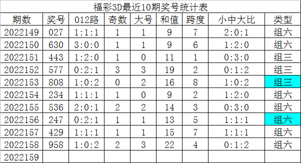 类型判断:上期奖号为021。号码0近10期开出3次,走势较冷,号码1出现1次,走冷,号码2出现4次,走势较冷,上期总体遗漏走温,本期注意温码奖号。