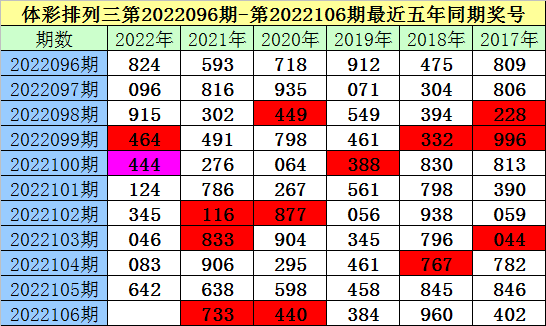 夏姐体彩排列三第2022106期奖号推荐: