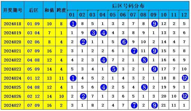 上期回顾:大乐透第2024027期奖号为:前区08、09、16、22、23,后区07、09,前区奖号三区比为2:3:0,奇偶比为2:3,大小比为2:3,后区开出大大组合07、09
