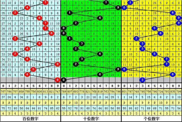 百位分析:该位最近10期开出了2个0路号码、4个1路号码、4个2路号码,0路号码走冷。本期排除2路号码,参考号码:9。