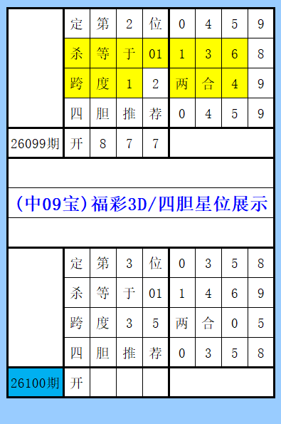 福彩3D(中09宝)四胆推荐