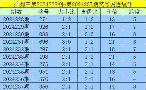 238期黄欢排列三预测奖号:和值和尾跨度分析