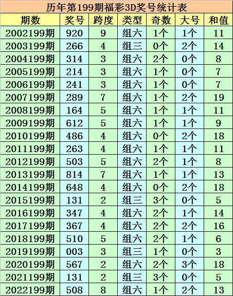 历年第199期福彩3D同期奖号为:920 - 266 - 314 - 214 - 241 - 289 - 164 - 612 - 486 - 263 - 503 - 814 - 648 - 131 - 347 - 367 - 510 - 003 - 567 - 131 - 508。