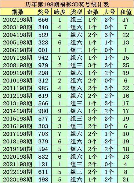 在以上奖号中奖,历年第199期福彩3D出现4次组三,出现17次组六。组六开出比例较高,本期继续关注组六。