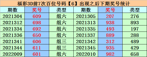 十位分析:十位上期奖号为6,历史上十位号码6已出现746次,最近100期该号码开出6次,上期为重复号码。