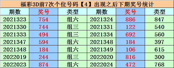 个位分析:上期个位开出奖号4,个位历史上号码4已开出697次,最近100期个位号码开出4次,上期号码遗漏7期出现。