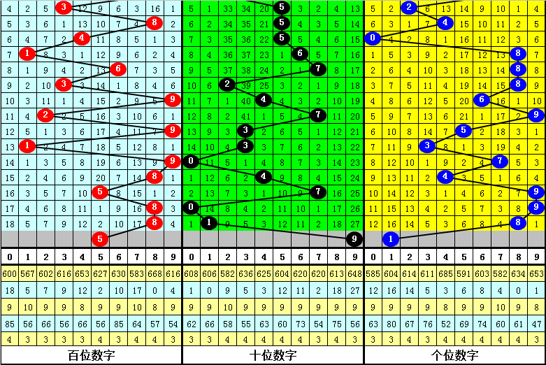 个位走势:最近10期出现在3-9之间,跨度为7点,开出范围较大,上期出现号码8,下降1点,本期注意该位走小。另外,最近10期该位012路号码比为5:2:3,1路走势较冷,本期注意1路出现,关注号码1。