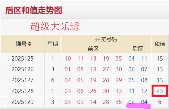 近五期大乐透开奖号码后区和值依次为15→13→13→23→6。后区和值均值为14。后区和值振幅为17,后区和值修正振幅为14。基于动态平衡干预以及波动趋势衡量,本期后区和值推测区间为0-28。基于风险对冲策略,本期后区和值区间缩水为12-20。