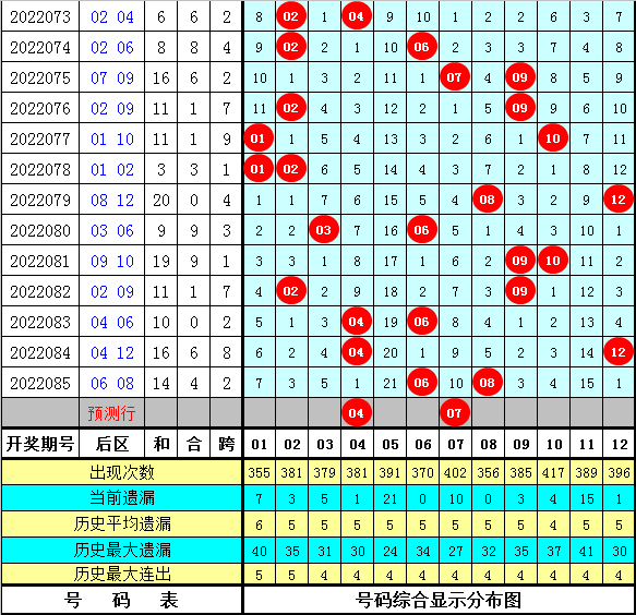 大乐透第2022086期后区享乐分析: