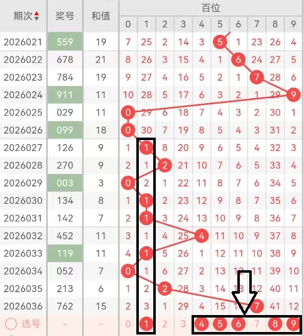 上期十位落位“6”开出奇数号码球,落位号码走出大振幅数值5,上期十位号码开出“0路”号码6,五行走出“火”那么通过对十位的振幅走势来看,上期十位走出大数值振幅5,那么本期我认为十位号码的振幅本期考虑走出中小振幅数值(0123456)更符合区间的整体趋势,上期落位大数值6后,十位接下来回补中小数值号球(0123456)的走势更符合区域整体走势,那么本期要注意十位趋势号码在中大数值出现的可能性最大,因此中大数号码球是我们本期在十位的重点思路。