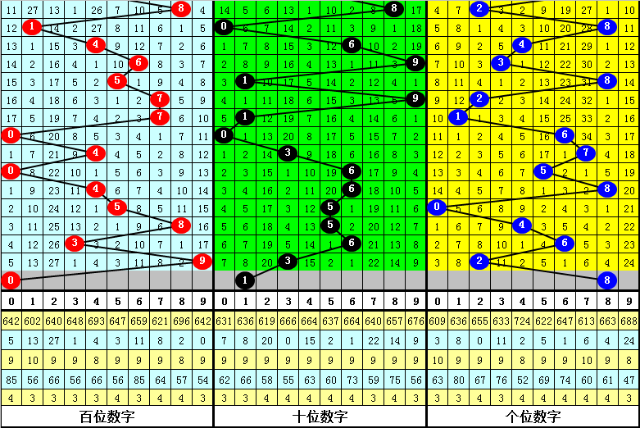3、在以上0-9号码频次中,号码012路比为20:19:29,奇偶比为35:33,本期预计百位开出偶数号码,参考号码0。