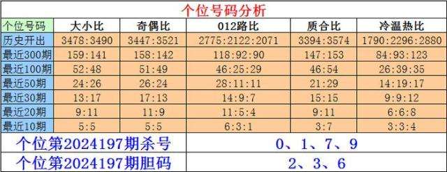 排列三个位第2024197期杀号:0、1、7、9