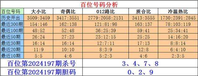 排列三百位第2024197期杀号:3、4、7、8