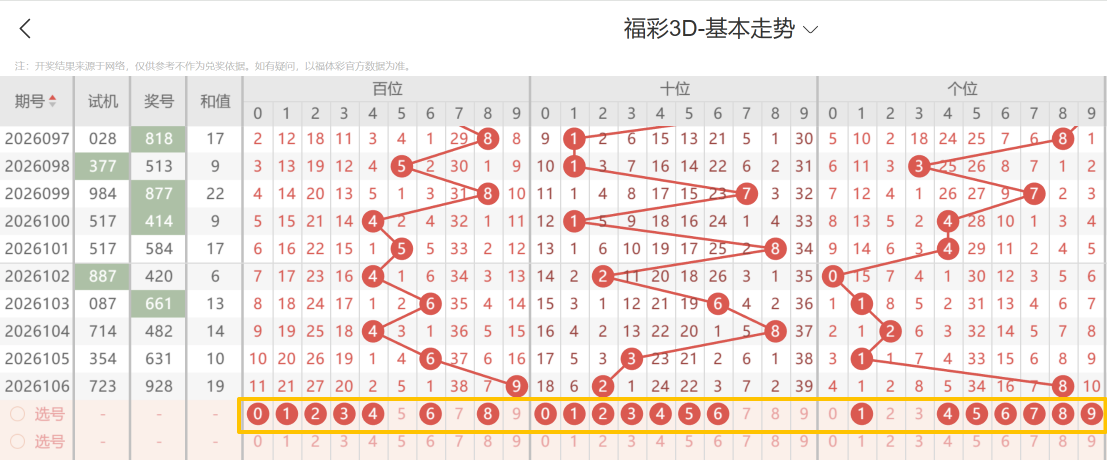 带着粉丝发大财福彩3D第26107期选号条件分析