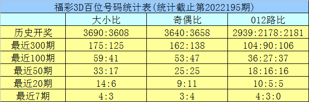 百位推荐:上期开出号码6,为大号、偶数、0路号码,该位前7期大小比为4:3,小号出现较少,本期注意回补;
