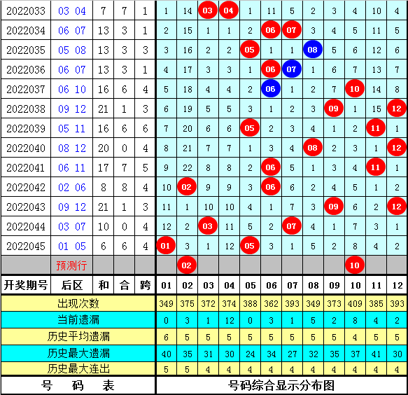 上期回顾:大乐透第2022045期开出奖号:02 03 07 12 20 + 01 05,前区包含4个尾数:0、2、3、7,后区开出全奇、全小组合。