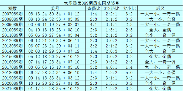范秋雨体彩大乐透第2022089期历史同期定位分析: