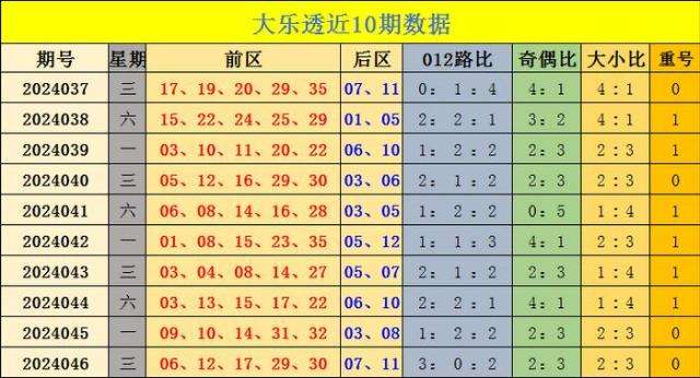 前区大小:上期前区大小比为2:3,前10期前区大小比为21:29,本期看好前区大小比2:3。