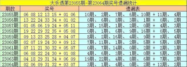 第2023055期号码06出现在一号码球,其下期前区开出奖号:13、22、24、33、34,号码遗漏值分别为:0期、6期、8期、3期、1期。