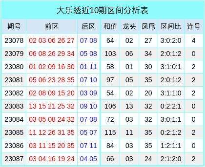 和值分析:上期前区奖号和值66,在近10期的数据中显示平均值为81。90,其中5期高于平均值,上期数据显示和值低于平均值。预计本期数据显示和值将会开在平均值之上,参考和值在104左右。