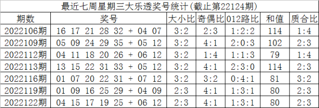第2022125期大乐透星期三奖号分析: