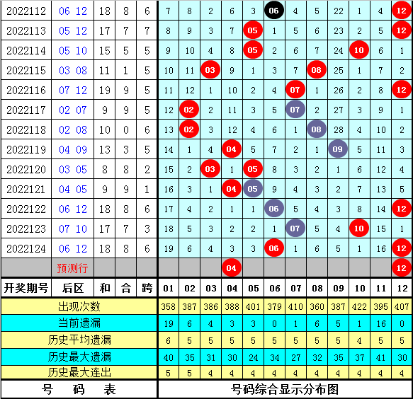 后区五码推荐:04 06 08 11 12