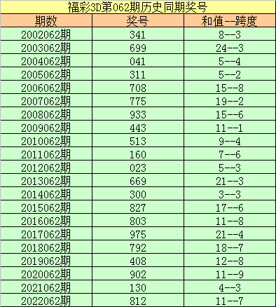 2022062期开奖号码:812