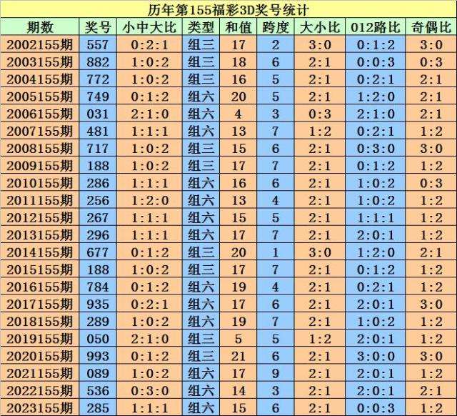 开奖回顾:福彩3D第2023155期奖号为:285。