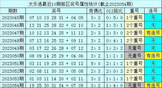 前区重号分析:最近10期有7期奖号包含了重号,共开出11个重号,上期前区没有出现重号,本期注意重号回补,关注上期奖号19。