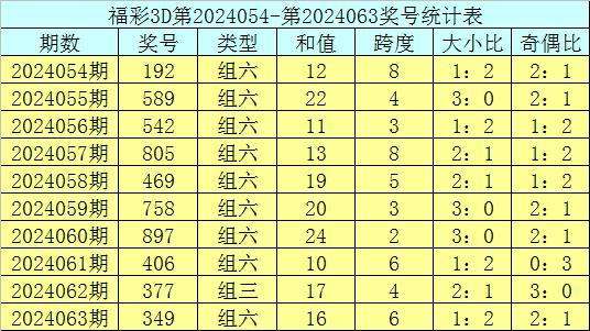 类型判断:上期奖号为349。号码3近10期开出2次,走势较冷,号码4出现4次,走冷,号码9出现5次,相对走热,上期总体遗漏走温,本期关注冷码解冻。