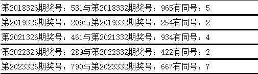 与前期历史同期奖号对比分析,在最近五年开奖中,第326期同期奖号与第332期同期奖号都出现了相同号码: