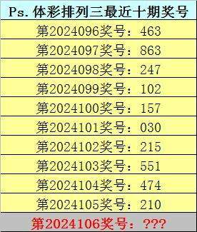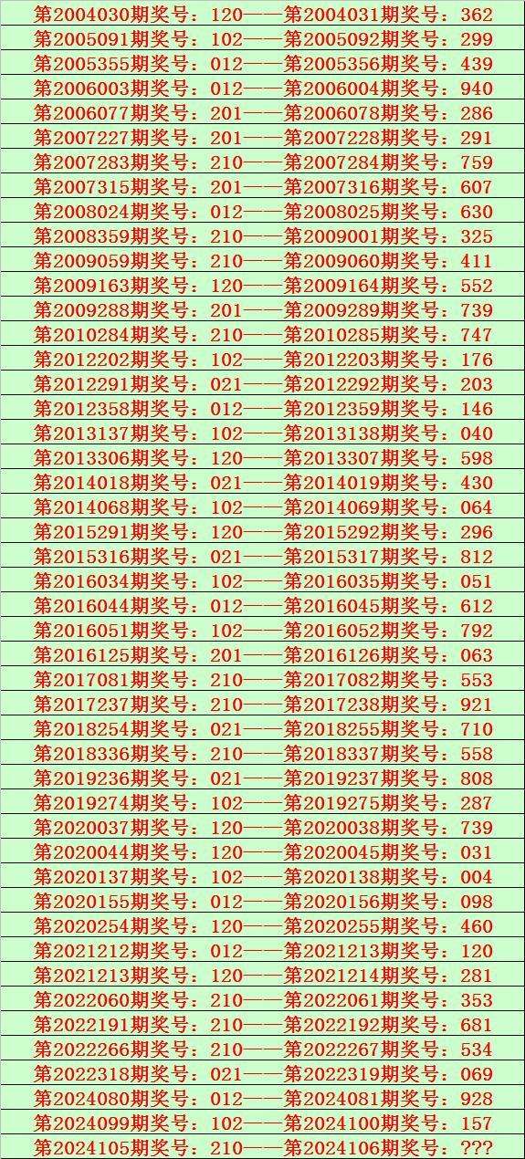 开奖回顾:体彩排列三第2024105期奖号为:210,类型:组六。