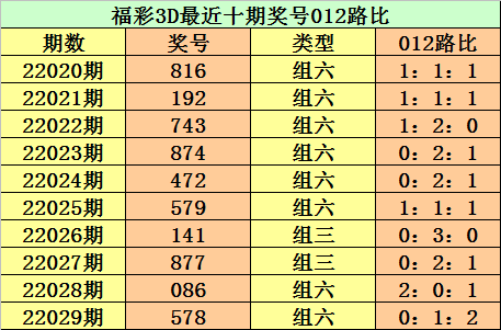开奖回顾:第2022029期3D奖号为578。形态:组六,奇偶比2:1,大小比3:0,012路比为0:1:2。