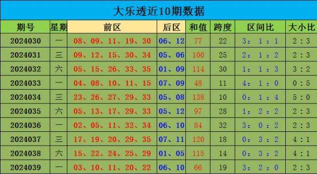 大乐透第24039期奖号为:03 10 11 20 22+06 10,前区三区比为3:2:0,大小比为2:3,跨度为19,后区奖号为小大组合06 10。