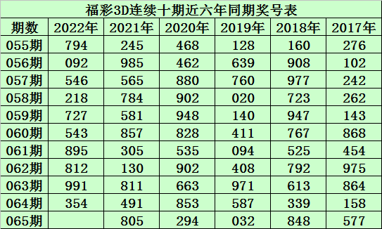 陈青峰福彩3D第2022065期推荐: