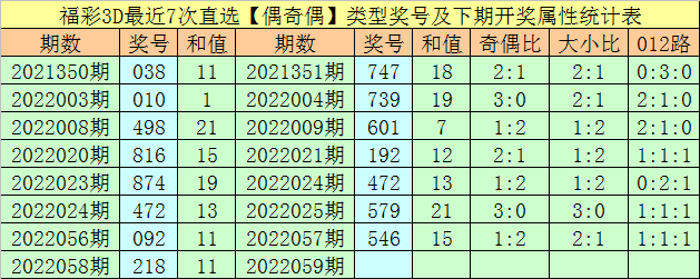 开奖回顾:福彩3D第2022058期开奖号码为218,奖号直选类型为:偶奇偶、小小大和212路。