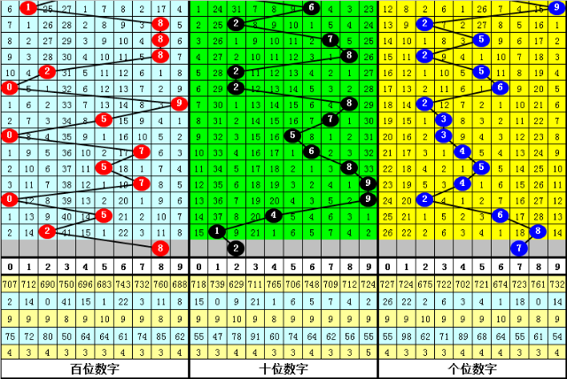 三、下期开奖个位奖号分别为:7-9-1-2-2-9-6,其中奖号奇偶比开出4:3,大小比开出4:3,012路比开出3:2:2,本期预计个位在:7、8、9内开出,一码参考1路号:7。