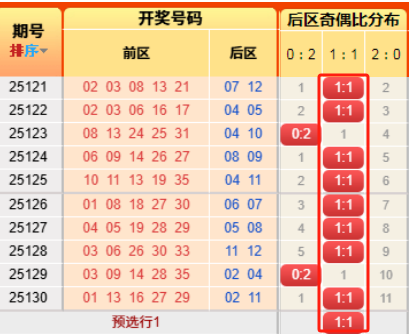 2、后区奇偶比