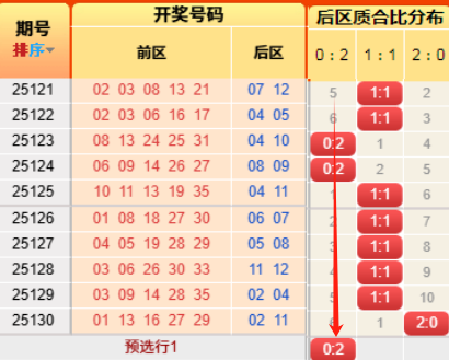 上期后区开出质合比为2:0